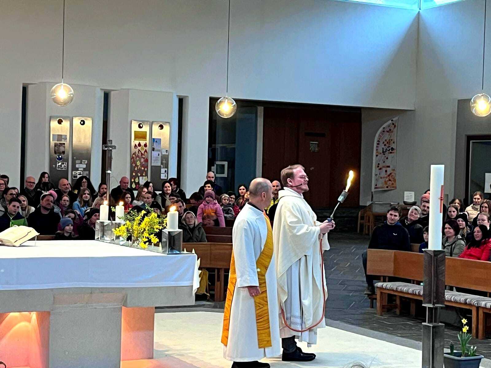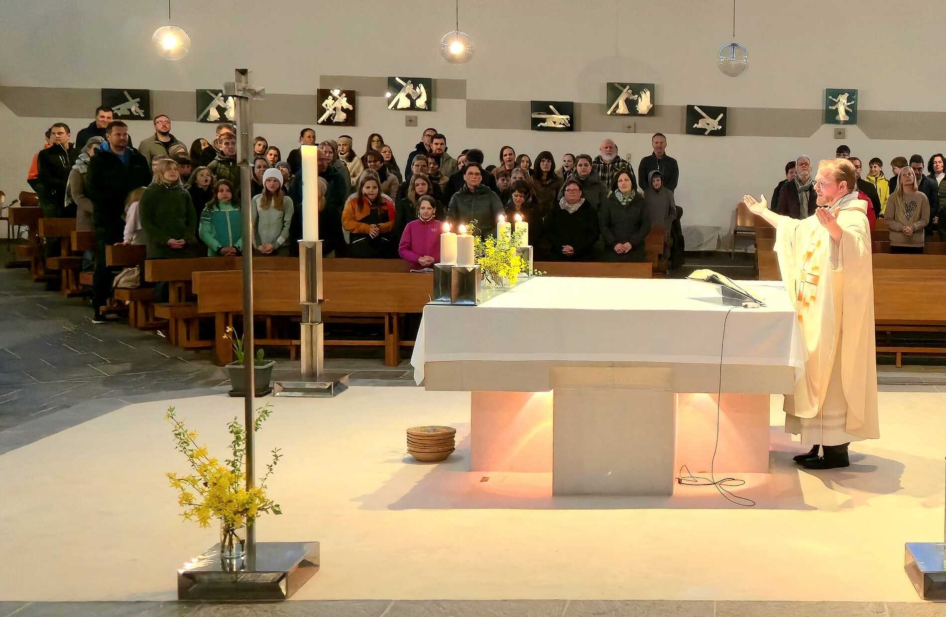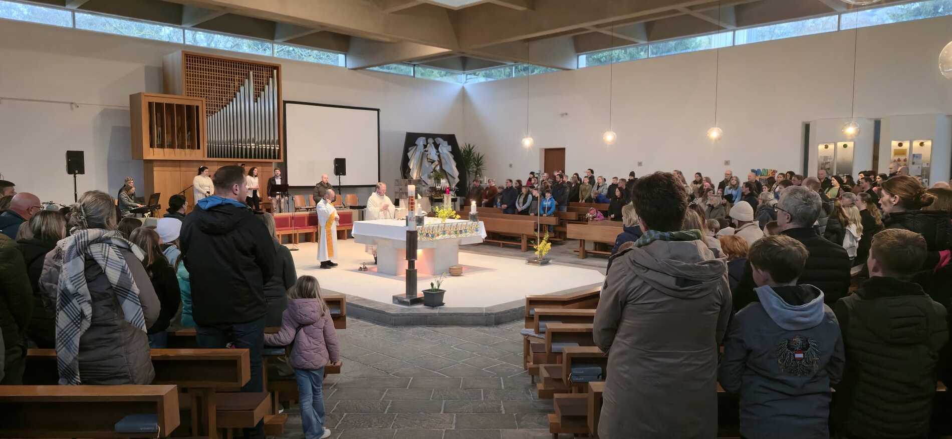 Über 100 Firmlinge aus dem Pfarrverband Waidhofen – Ybbstal versammelten sich mit ihren Familien in der Pfarrkirche Böhlerwerk, um gemeinsam die Feuerkraft des Heiligen Geistes zu feiern und zu erleben. Kaplan Luca Fian stellte in seiner Predigt diese gewaltige Kraft, die die Apostel am Pfingstfest zu mutigen Zeugen des Evangeliums machte, im Vergleich dar: Zuerst entzündete er ein Feuerzeug, dessen Flamme ohne große Mühe von einem Firmling ausgeblasen werden konnte. Wie unerschütterlich stark die Kraft des Heiligen Geistes ist, machte er anschließend mit der Feuerflamme aus einem Gasbrenner sichtbar. Musikalisch gestaltete die Messe die Gruppe „Stimmstärke 8“, die sich mit ausdrucksstarken Liedern in die Herzen der Mitfeiernden sang.