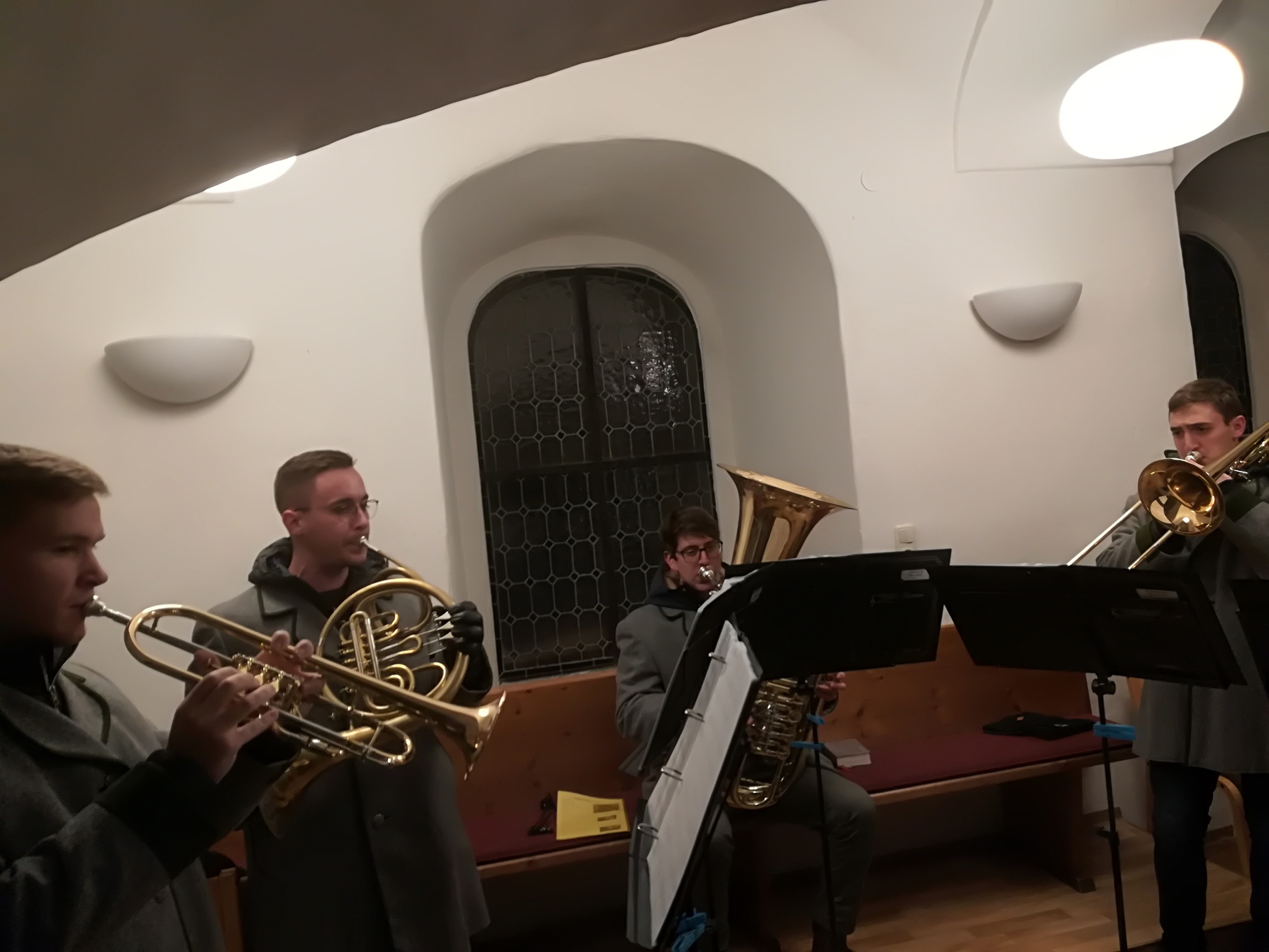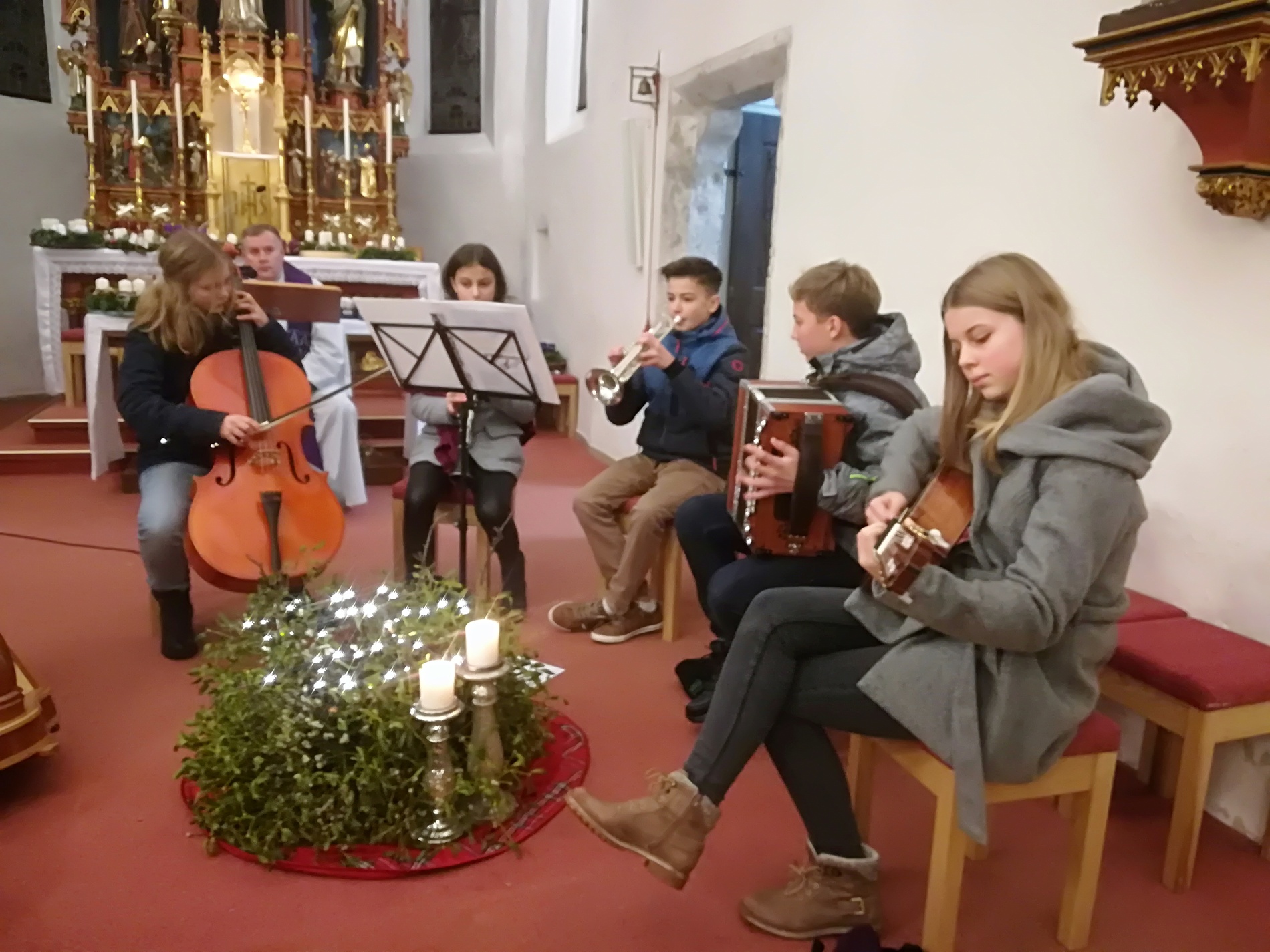 Bläserensemble der Trachtenmusikkapelle, die Jungmusikerspielgruppe mit Cello, Klarinette,Trompete, Gitarre und Steirischer, das Geschwisterduo Hanna und Matthias Kronsteiner auf der Steirischen und Harfe sowie das Brüderquartett Fluch mit vierstimmigem Gesang.