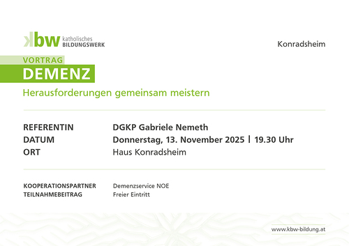 Vortrag von Demenzberaterin DGKP Gabriele Nemeth. In Kooperation mit dem Demenzservice NÖ.